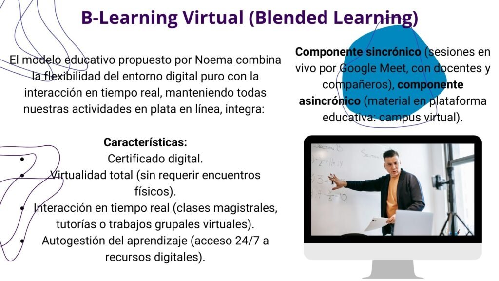Con un enfoque en innovación y calidad, Noema combina metodologías pedagógicas actualizadas (como el b-learning) y estándares internacionales para apoyar el crecimiento de organizaciones y profesionales.